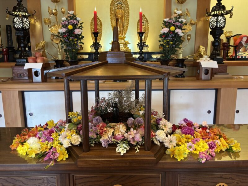 当日は晴天に恵まれ、過ごしやすい気候の中、多くの檀家様やご近所の皆様にご参加いただきました。ご詠歌や住職による法話を行い、行事に華を添えることができました。
